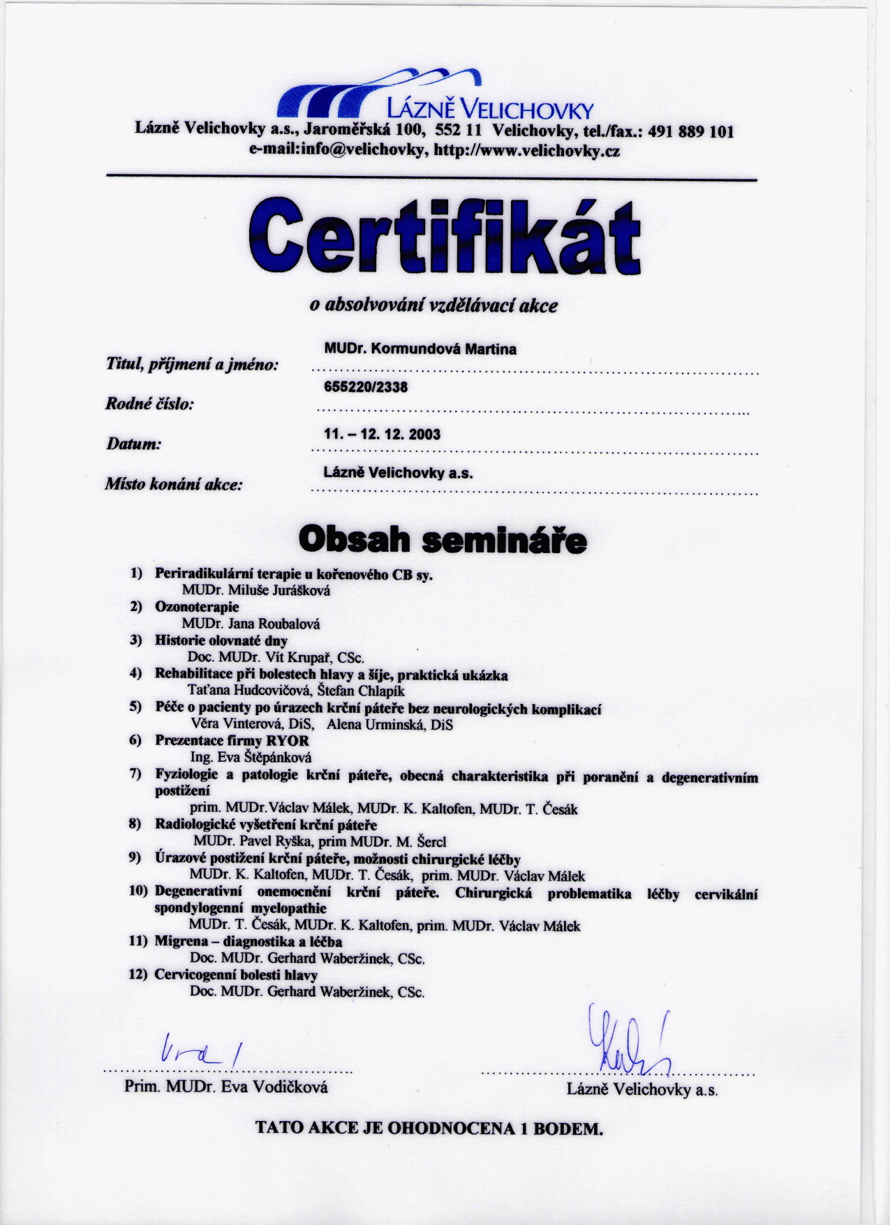 Centrum zdraví a regenerace REVITAL MUDr. Martina Kormundová